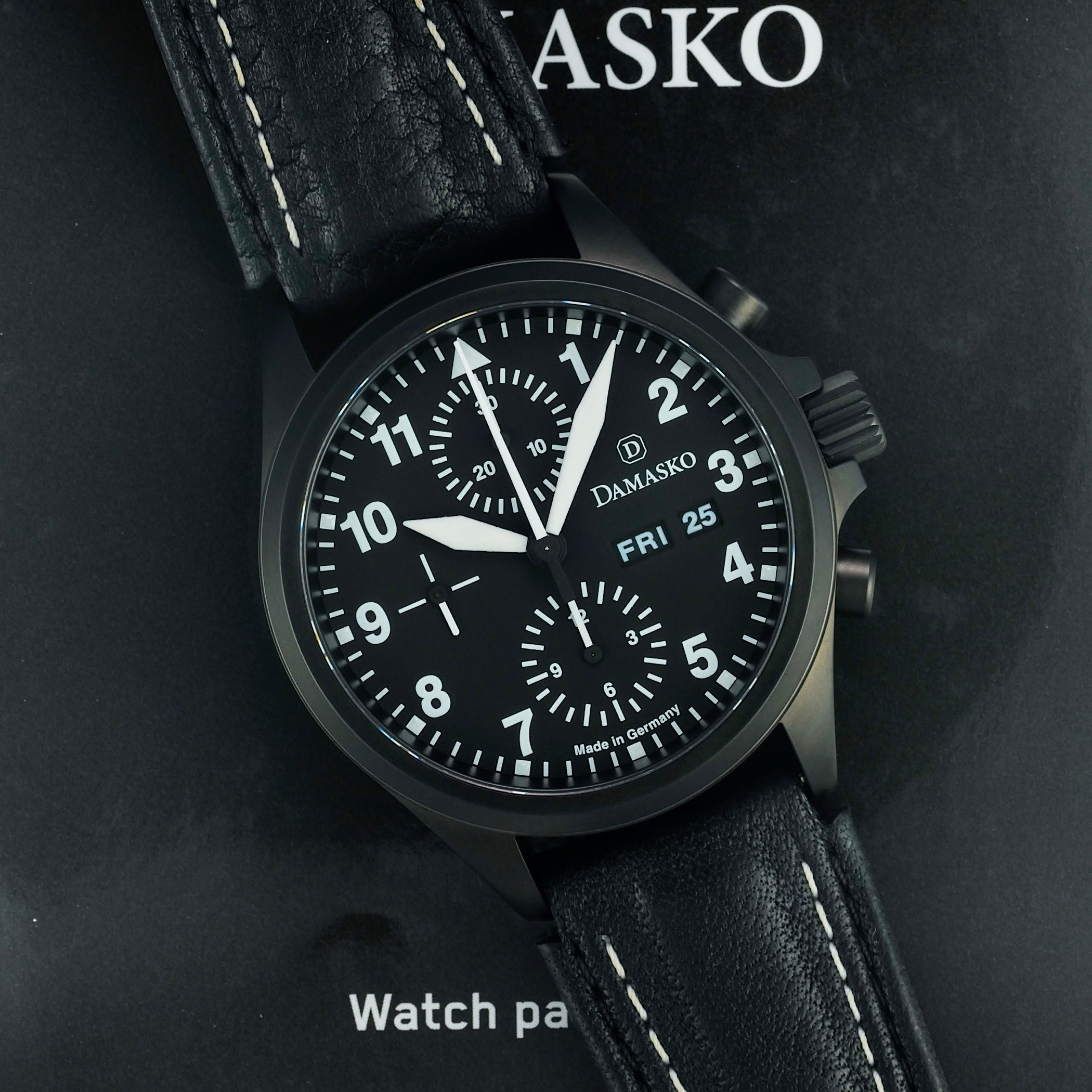 The Damasko DC56 Black is made by watch enthusiasts, for watch enthusiasts. With its ice-hardened stainless steel DAMEST-coated black case and patented push-button Damasko System for the crown and chronograph pushers, Damasko has created a timepiece built to withstand the harshest environments and retain its appearance as good as new for years to come.
