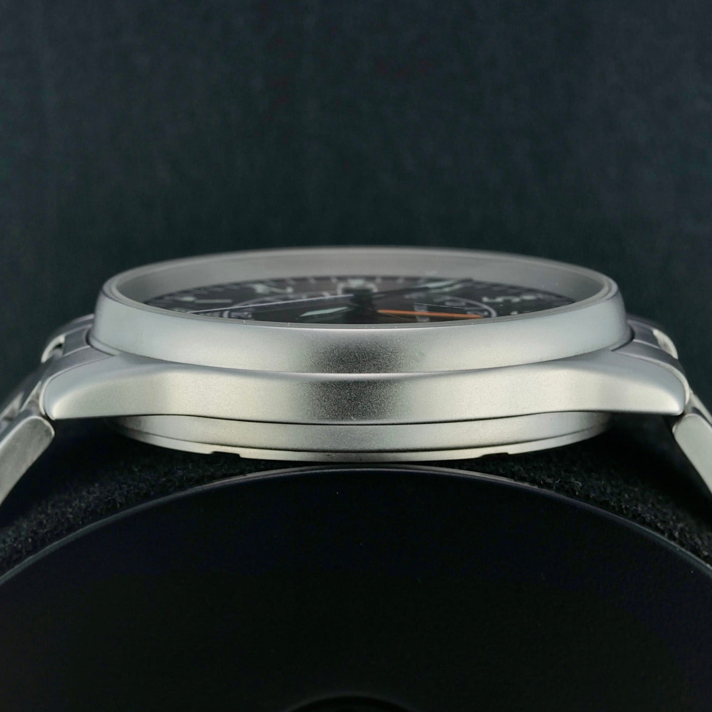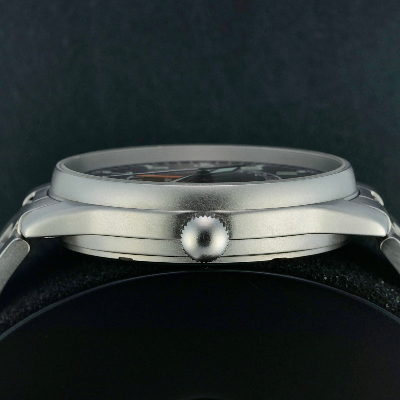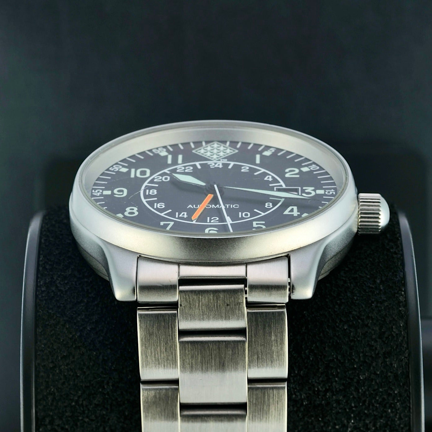 The Fortis “Red Arrows” Automatic GMT 596.10.148 is a neo-vintage pilot’s watch that blends classic aviator heritage with practical world-time functionality. Produced in the mid-1990s as a special edition commemorating the British Royal Air Force’s famed aerobatic team, the Red Arrows, this model features a robust 40 mm stainless-steel case, a black dial with bold Arabic numerals for exceptional readability, and an automatic ETA 2893-2 movement with a GMT complication that lets wearers track a second time zone—an essential feature for pilots and frequent travelers alike.