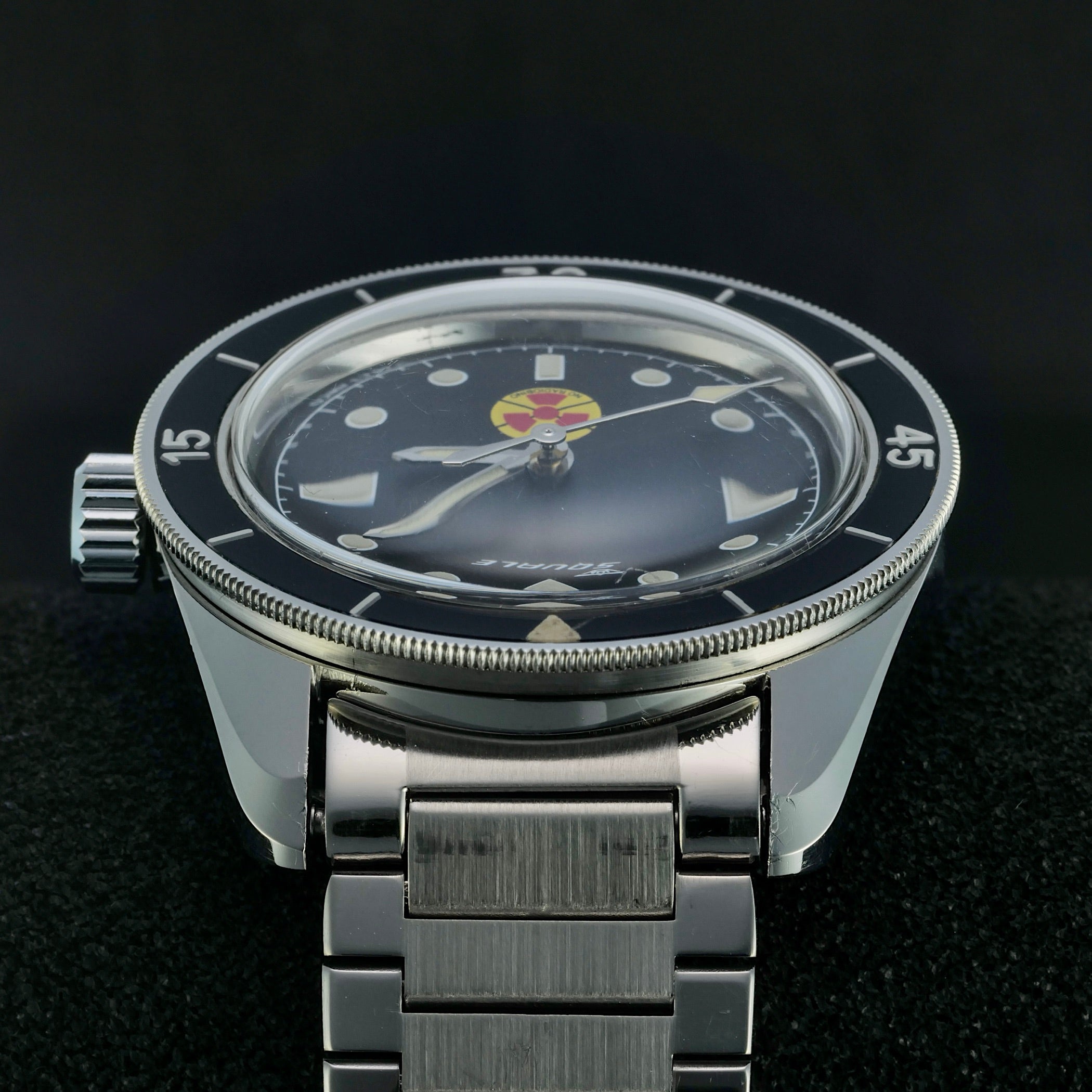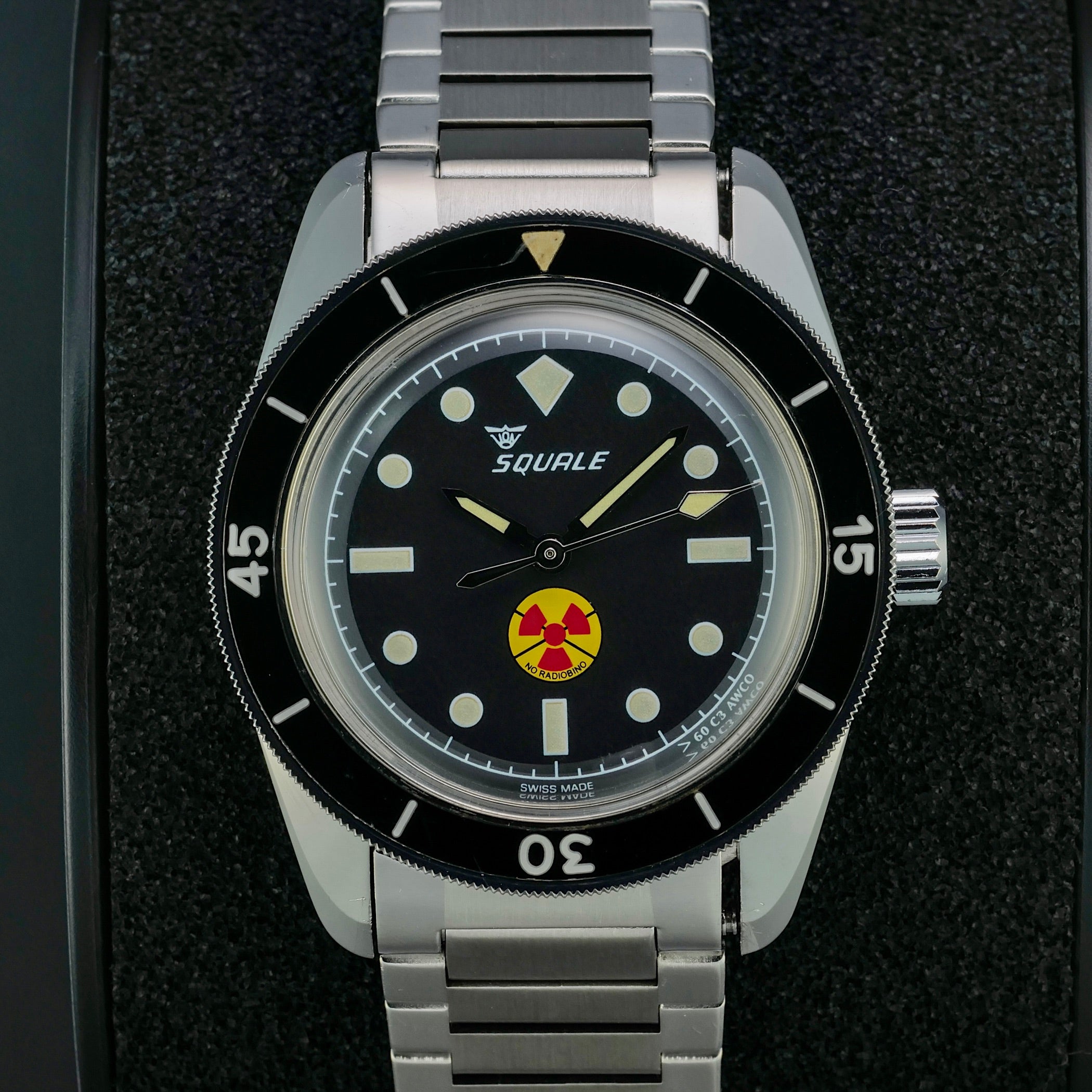It’s well known that Squale crafted the Blancpain Fifty Fathoms cases for Blancpain during the 1960s, but when Squale CEO Andrea Maggi uncovered 180 new-old-stock “pre-Squale” Fifty Fathoms cases from the 1950s, he saw an opportunity to honor that legacy. Partnering with the Amsterdam Watch Company in 2020, Squale created a limited-edition collaboration to celebrate this remarkable discovery. Produced in three variants of just 60 pieces each, the Squale No Radiobino pays nostalgic tribute to one of the most iconic dive watches ever made.