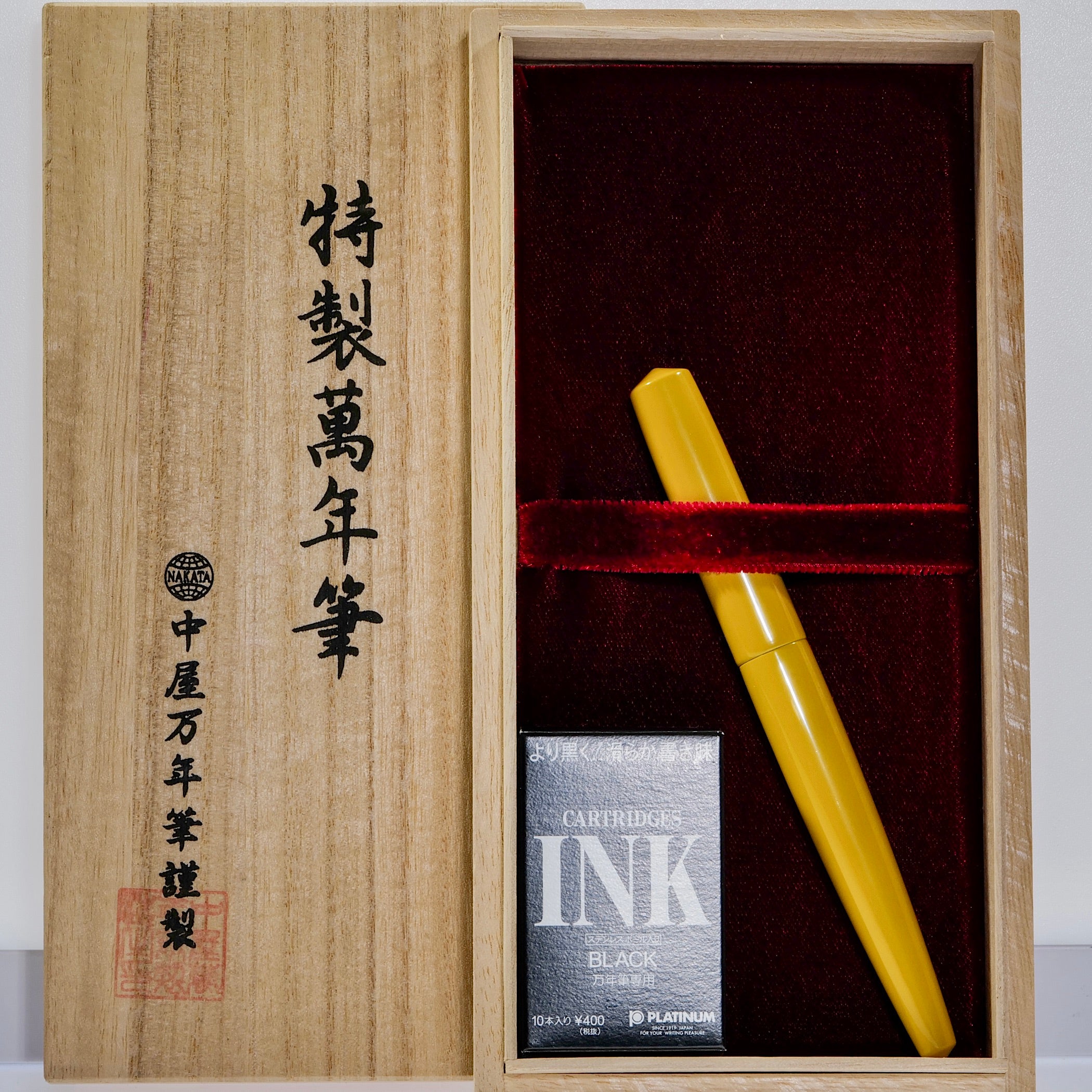 Nakaya Ryogiri Nanohana-iro Fountain Pen with 14K Gold Nib, Full Set