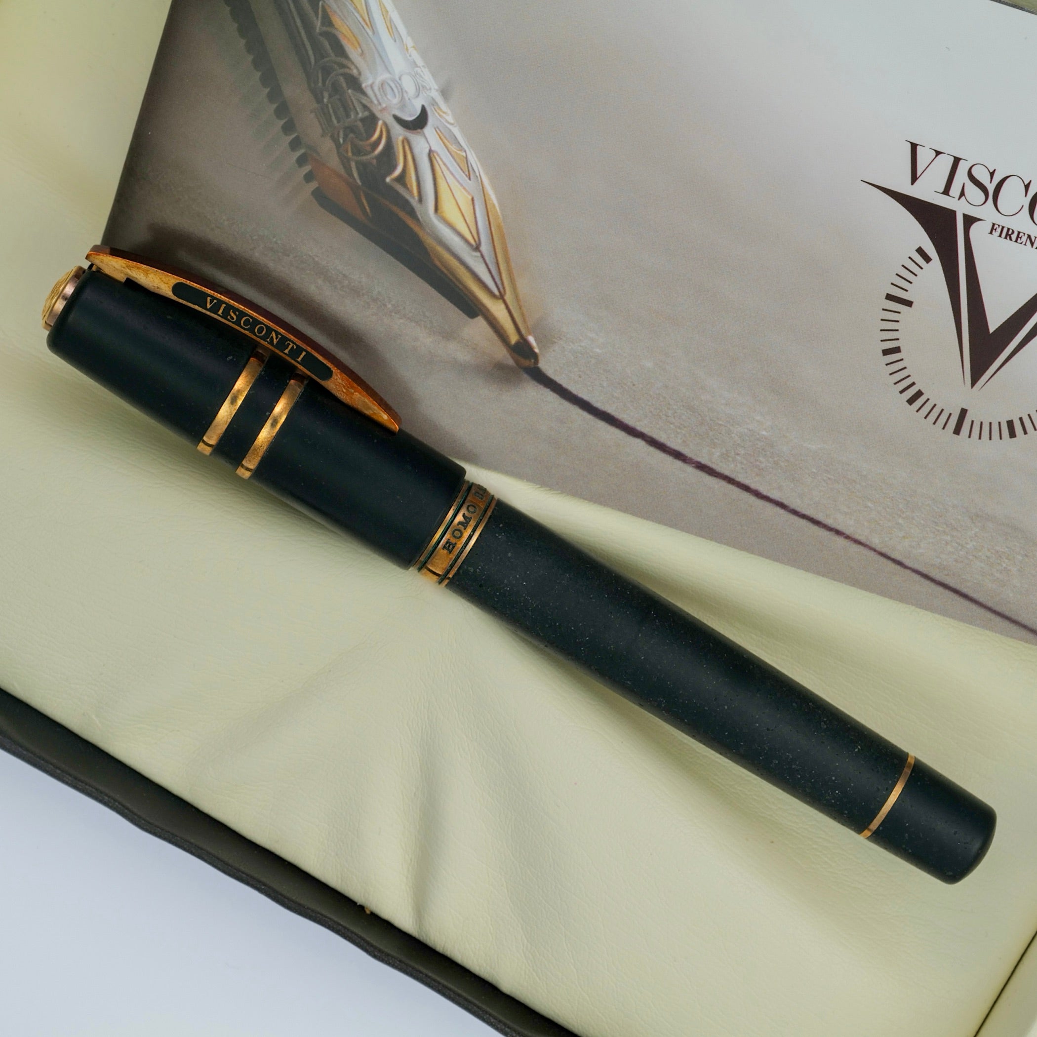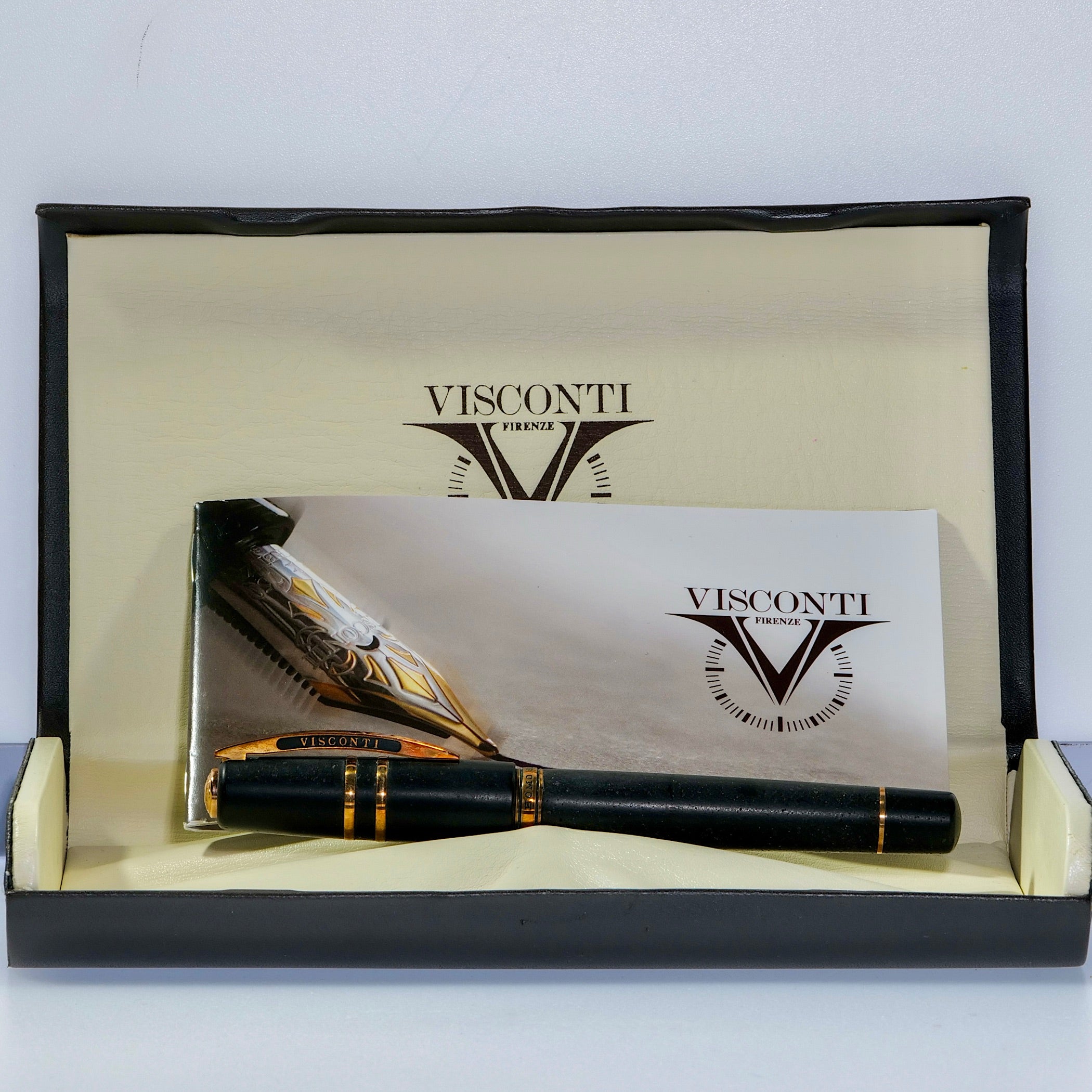 This pre-owned pen has been used, inked, flushed, and cleaned. Included with this pen is the original Visconti Firenze leather box and serial number guarantee booklet.
