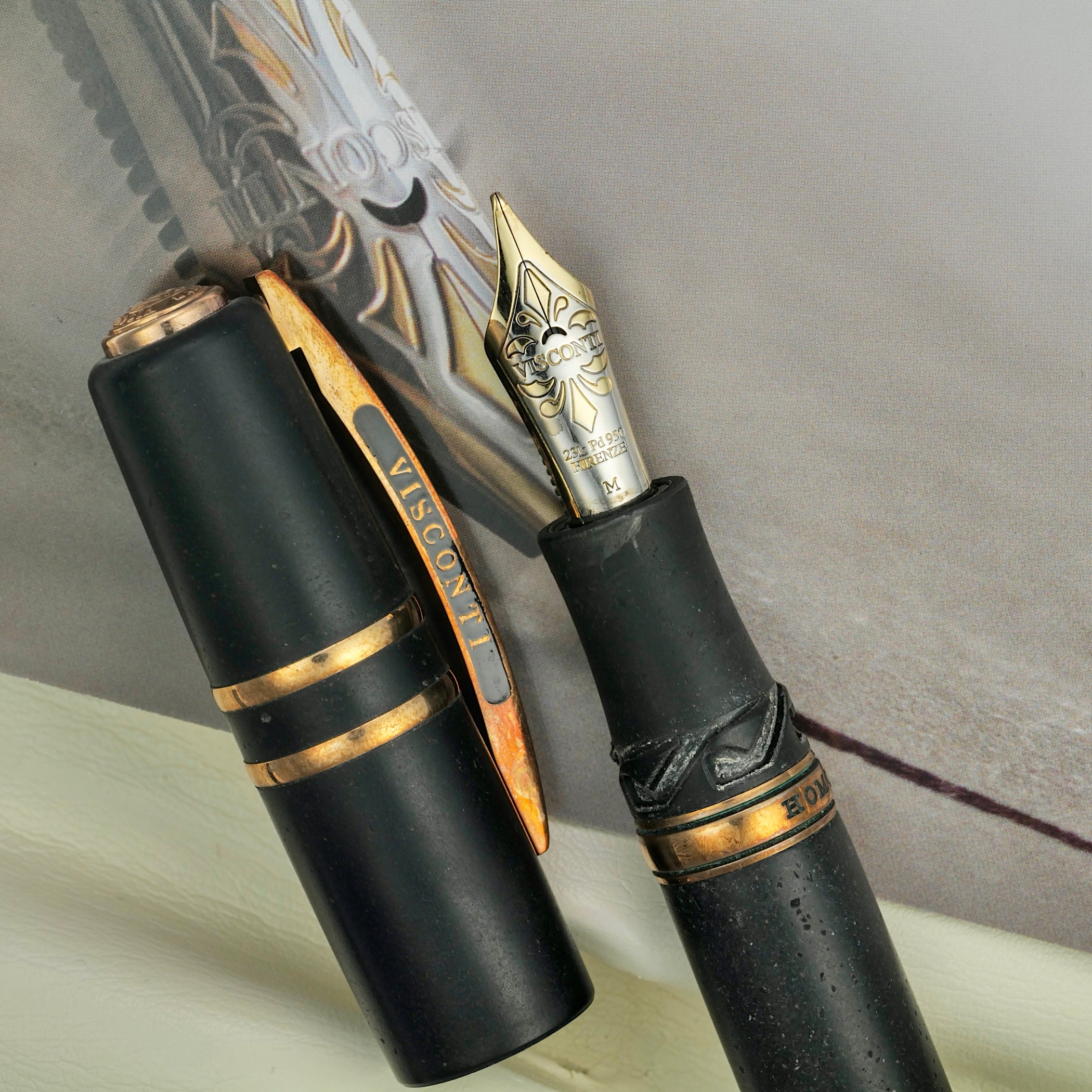 The Visconti Homo Sapiens Lava Bronze Fountain Pen is a masterful fusion of elemental strength and refined Italian design. Crafted from a unique blend of basaltic lava from Mount Etna, the pen’s body offers a warm, tactile texture that is both resilient and comfortable in hand, while solid bronze accents develop a distinguished patina over time. Its iconic form, paired with Visconti’s acclaimed 23K Palladium nib, embodies a balance of raw natural power and meticulous craftsmanship—an instrument that transforms the primal essence of the earth into a timeless writing companion.