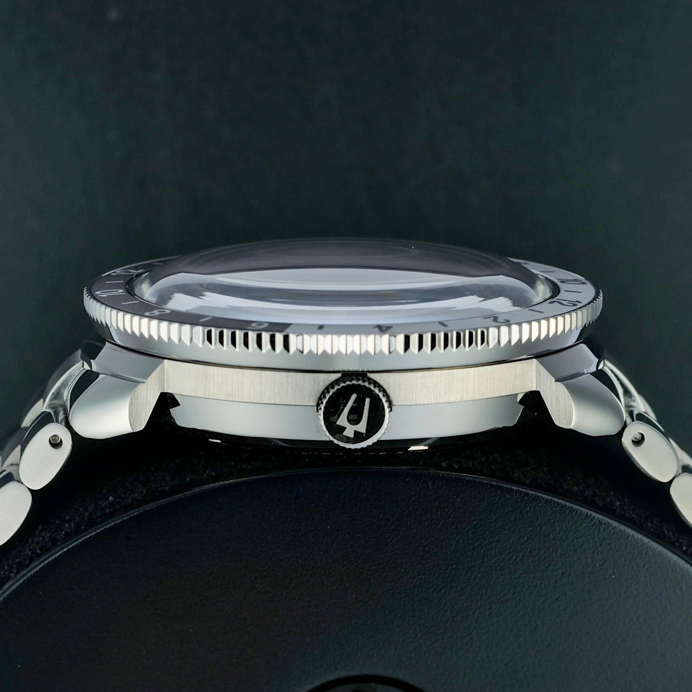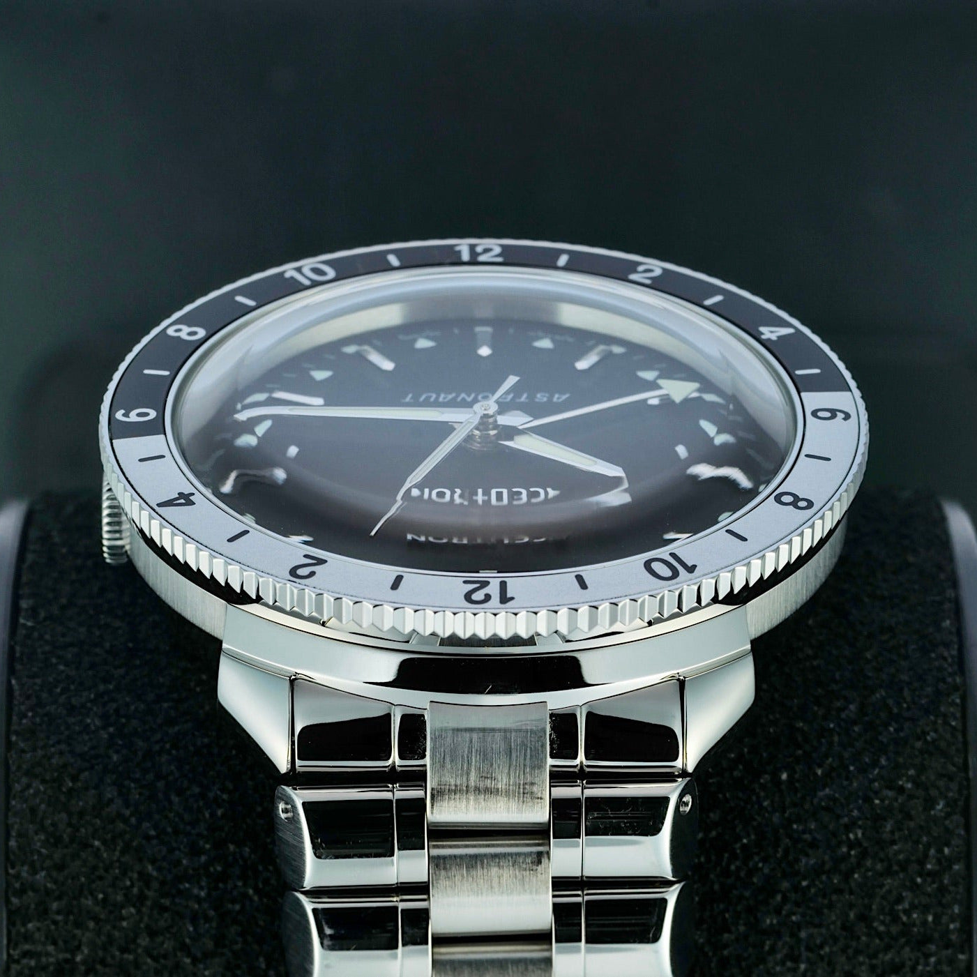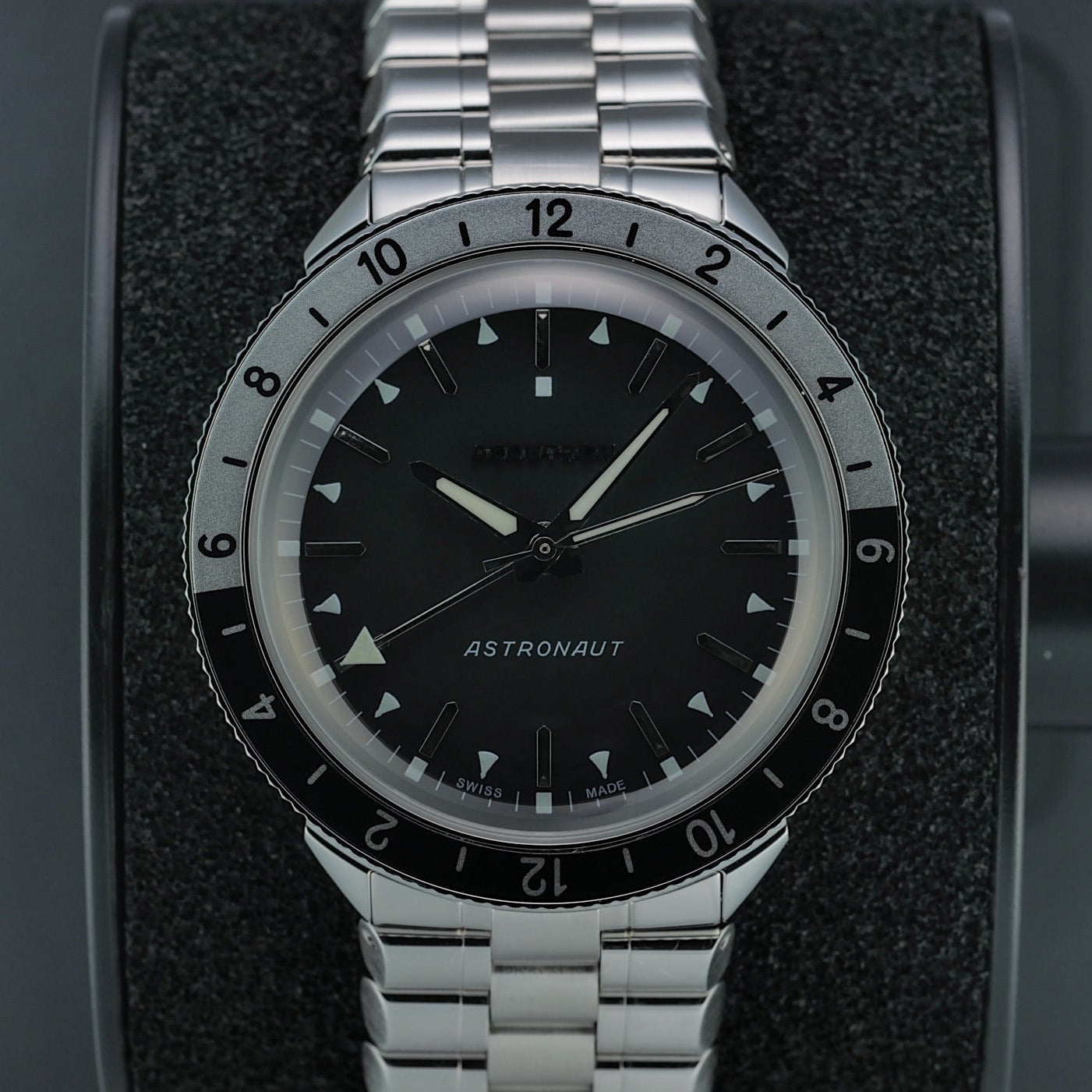 The Limited Edition Bulova Accutron Astronaut T GMT pays tribute to one of Bulova’s most storied space-era designs, reimagining the iconic 1968 Astronaut for a modern audience. Its stainless-steel case, turbine-inspired bezel, and bold 24-hour GMT scale echo the adventurous spirit of the early space age. Powered by a precise automatic movement and produced in a strictly limited edition of only 300 pieces, the Astronaut T GMT seamlessly blends heritage and innovation into a distinctive tool watch designed for collectors who appreciate both history and forward-looking design.
