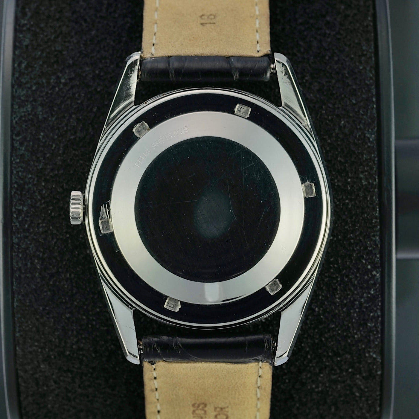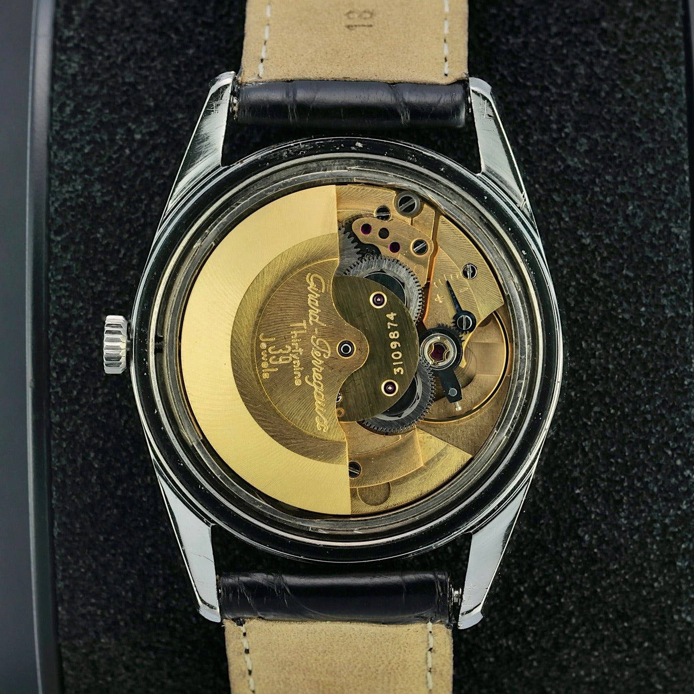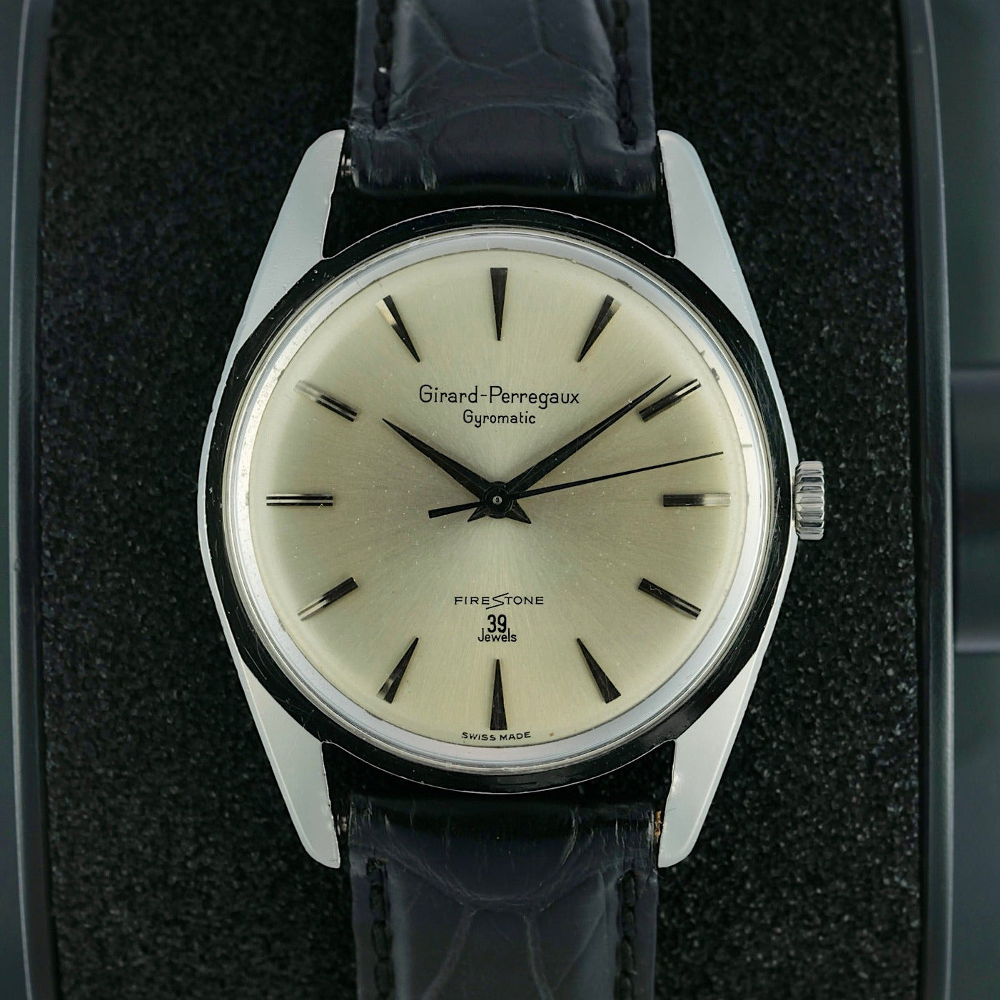 The Girard‑Perregaux Gyromatic 39‑Jewel “Firestone” is a classic mid-20th-century Swiss automatic dress watch that showcases Girard-Perregaux’s pioneering Gyromatic self-winding movement. The 39-jewel automatic mechanism was part of GP’s effort in the late 1950s and 1960s to create efficient, reliable, and slim automatic calibers—a hallmark of the brand’s innovation in mechanical watchmaking. Gyromatic movements were admired for their smooth bi-directional winding and robust performance, with many examples from this era prized by collectors today for their understated elegance and historical significance.