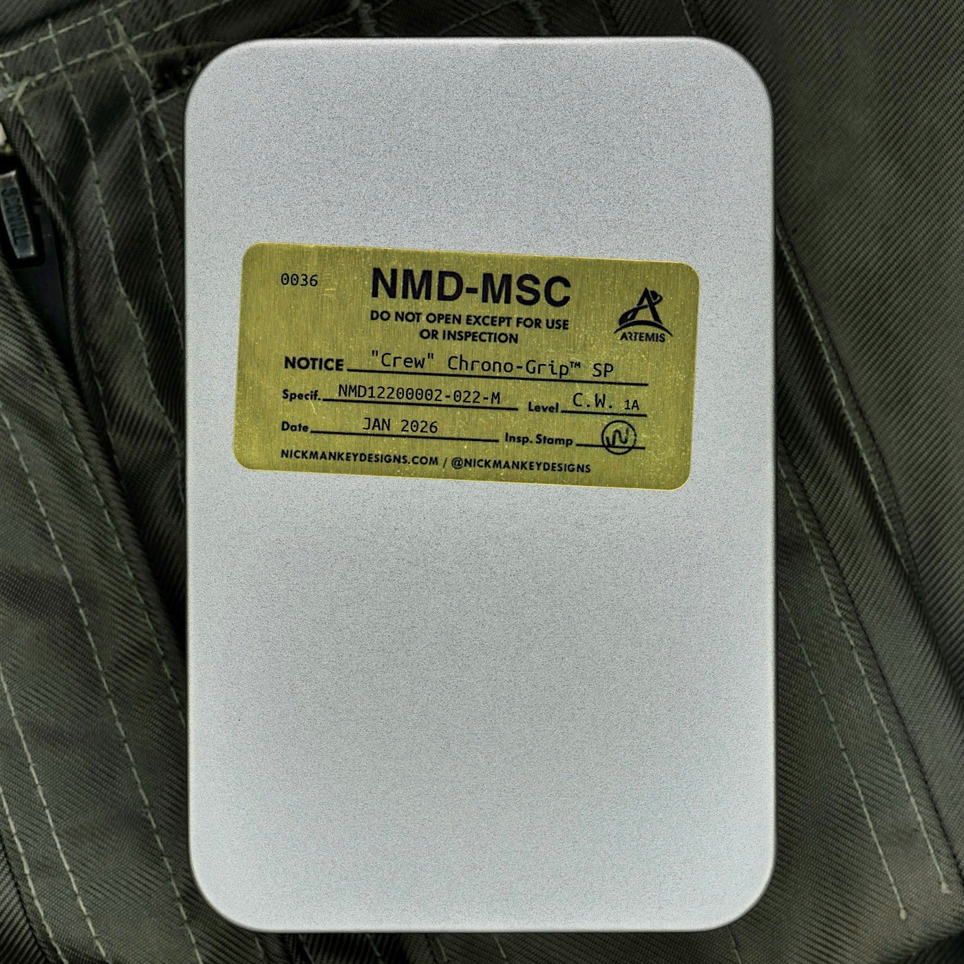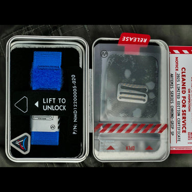 Inspired by the NASA Blue Nomex Flight Suits worn by Artemis astronauts for training and public appearances, this strap pairs a 1.8mm thick Crew Blue Pro Elastic Webbing with a Gray Anodized Grade 5 Titanium Chrono-Grip Hook and technical NASA Engravings to suit— symbolizing the arduous trials that all astronauts go through before setting off into the cosmos.