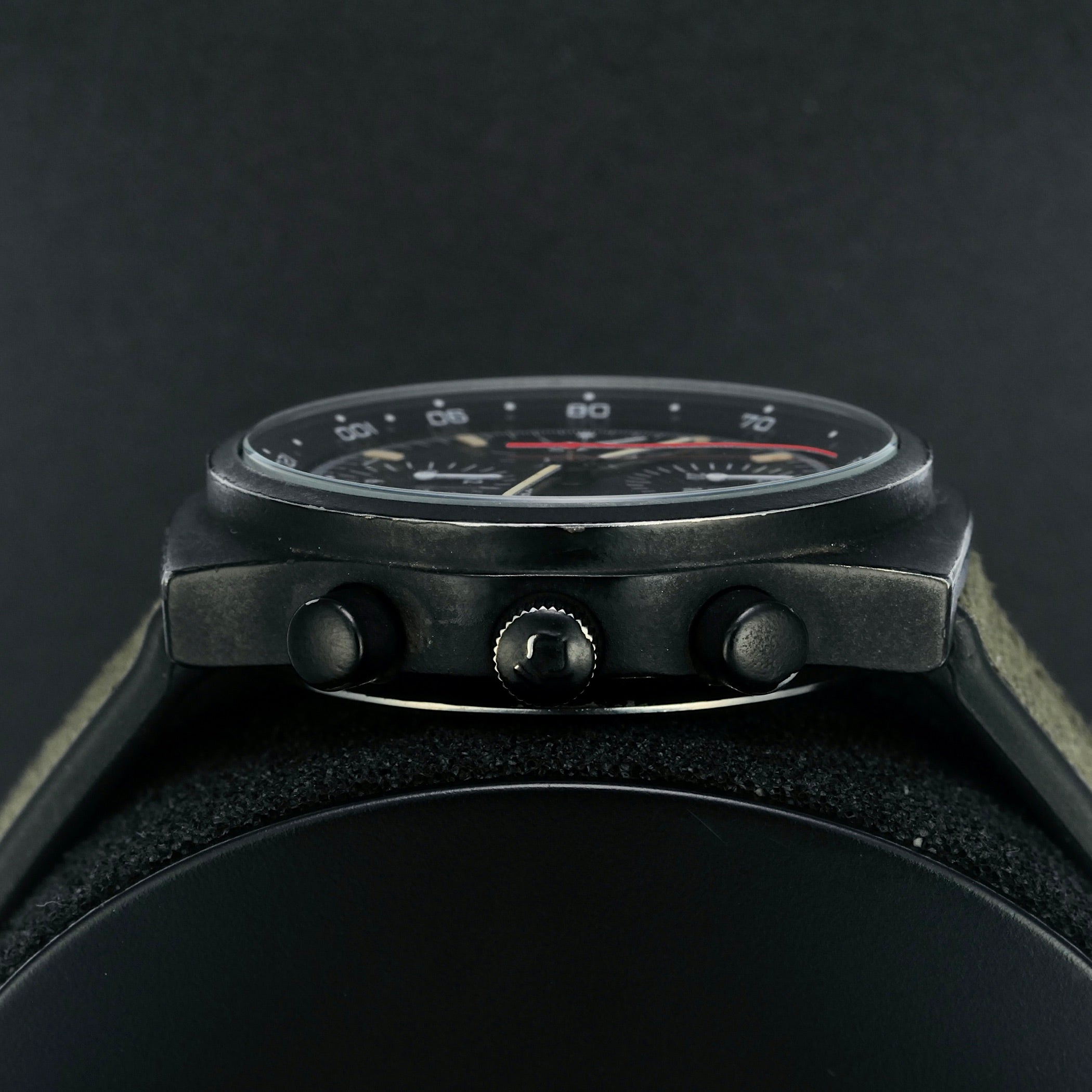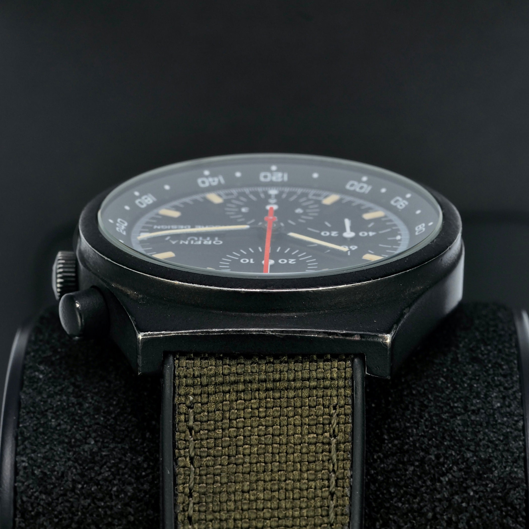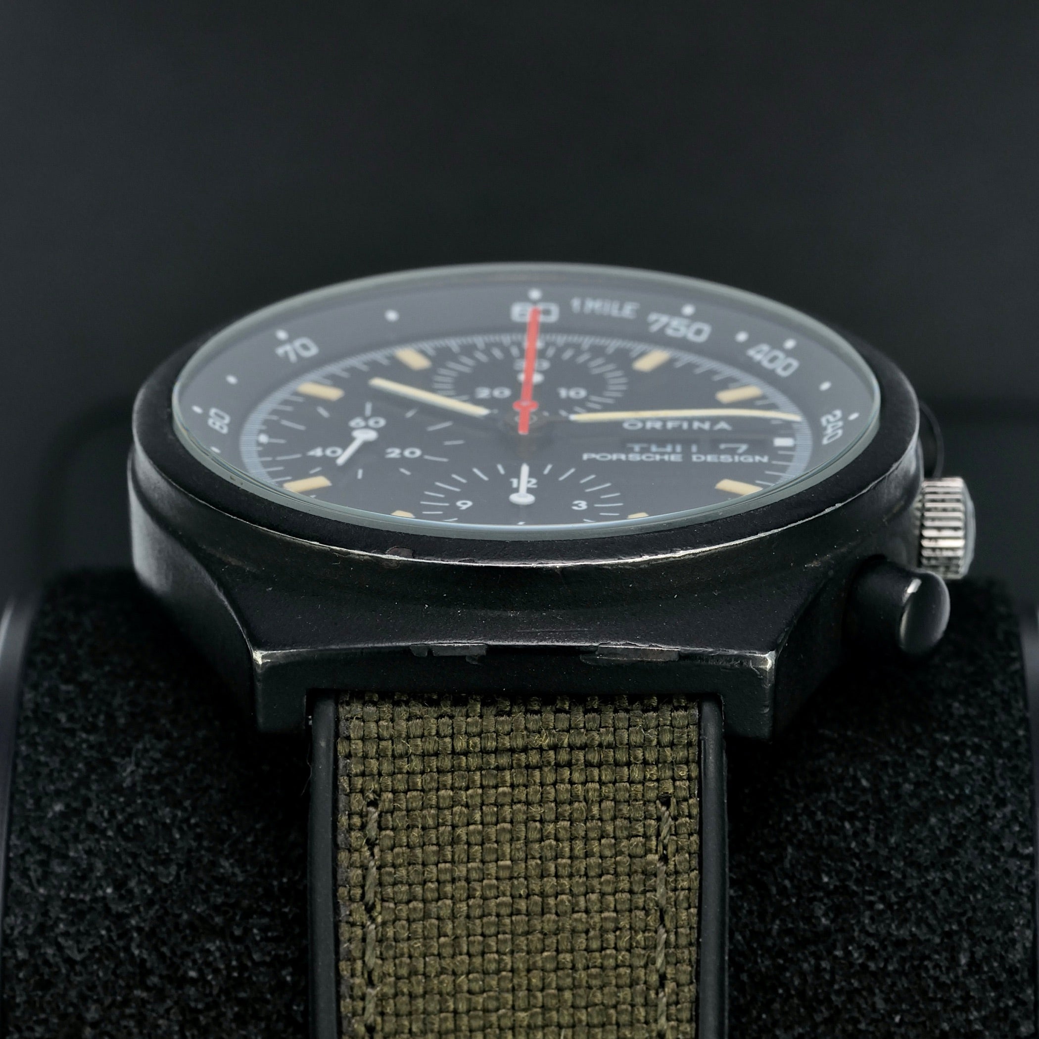 The iconic Porsche Design Chronograph 1 by Orfina was the first timepiece that utilized a black PVD coating for the case and bracelet. Designed by the legendary Ferdinand Alexander Porsche, creator of the Porsche 911, the Chronograph 1 was the first product introduced by his company, Porsche Design. Its use by Tom Cruise’s character, Lt. Pete “Maverick” Mitchell, in the Top Gun films has made the Porsche Design Chronograph a highly popular timepiece for collectors and movie enthusiasts alike.