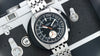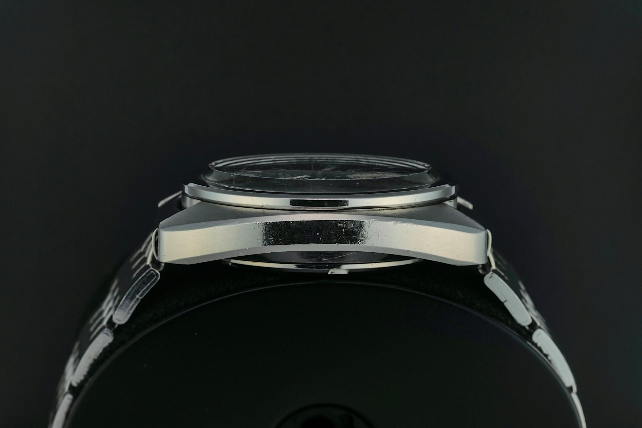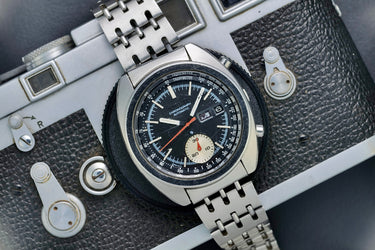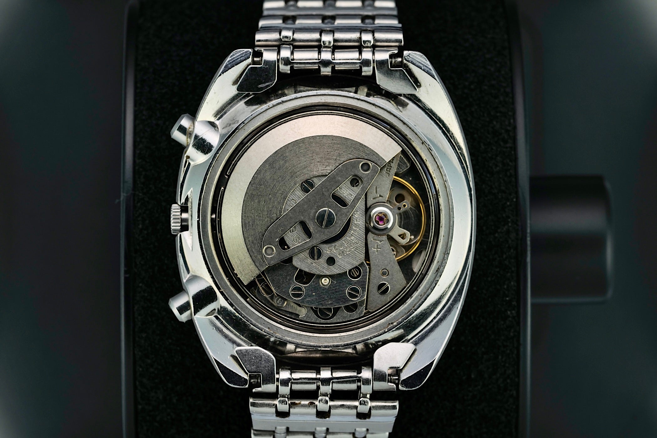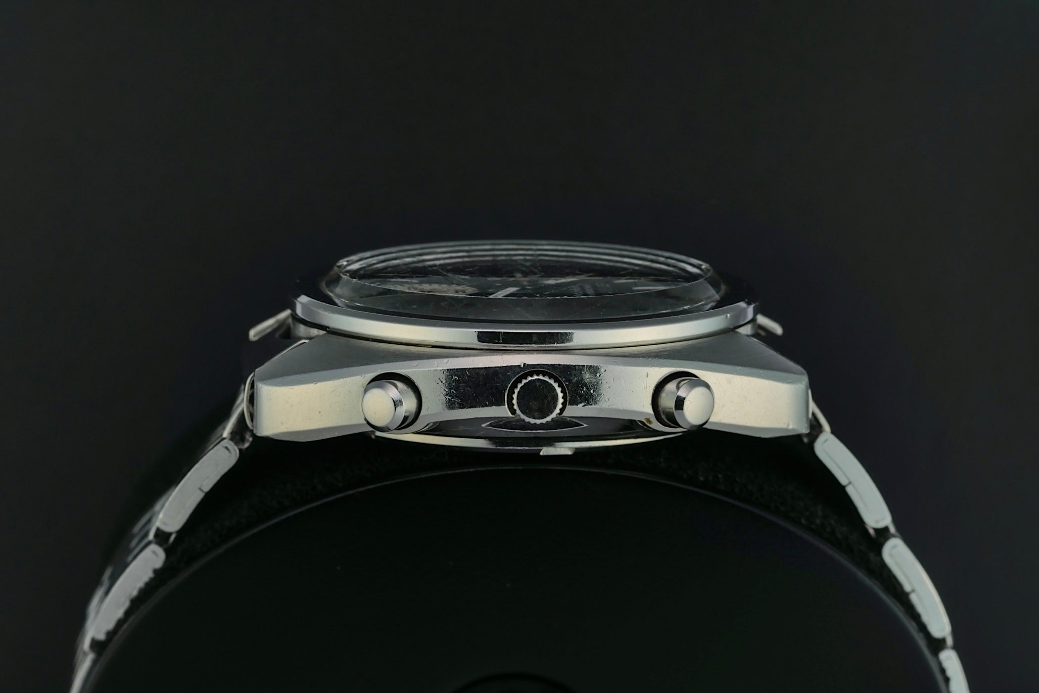 The Seiko Chronograph Ref 6139-6012 is a classic example of Seiko’s groundbreaking 6139 series, powered by one of the world’s first automatic chronograph movements introduced in 1969. Housed in a bold, sporty case typical of the 1970s, the ref. 6139-6012 features a single-register chronograph with a 30-minute counter, along with a practical day-date display. Its in-house caliber 6139 is notable for its innovative column wheel and vertical clutch system—technology that significantly improved chronograph precision and would influence future watchmaking for decades. This reference embodies the era’s design language while remaining a highly collectible piece valued for both its historical importance and everyday usability.